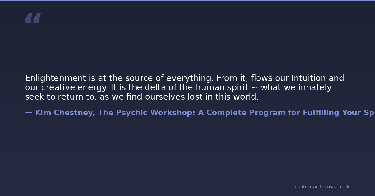 Enlightenment is at the source of everything. From it, flows our Intuition and our creative energy. It is the delta of the human spirit ~ what we innately seek to return to, as we find ourselves lost in this world.