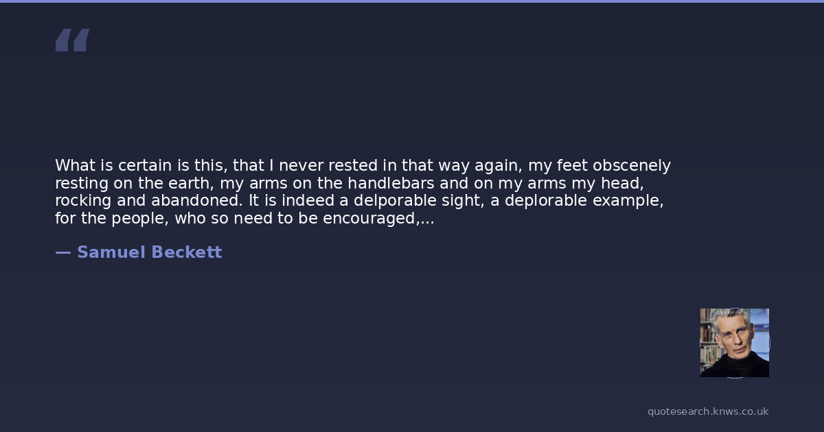 What is certain is this, that I never rested in that way again, my feet obscenely resting on the earth, my arms on the handlebars and on my arms my head, rocking and abandoned. It is indeed a delporable sight, a deplorable example, for the people, who so need to be encouraged, in their bitter toil, and to have before their eyes manifestations of strength only, of courage and joy, without which they might collapse, at the end of the day, and roll on the ground.
