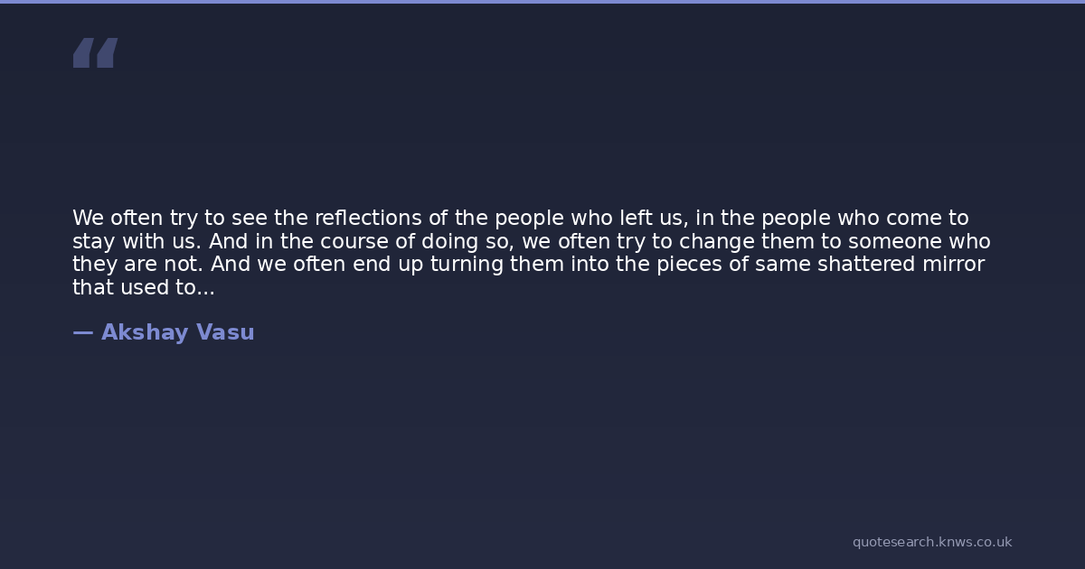 We often try to see the reflections of the people who left us, in the people who come to stay with us. And in the course of doing so, we often try to change them to someone who they are not. And we often end up turning them into the pieces of same shattered mirror that used to hurt us before they came.