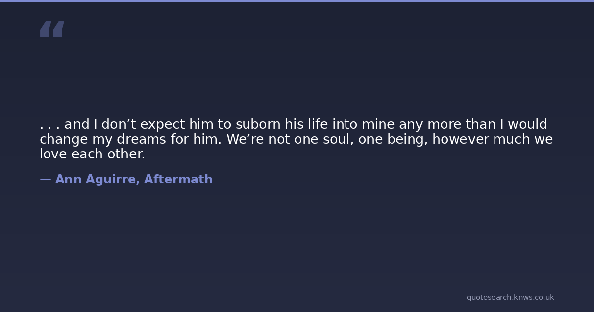 . . . and I don’t expect him to suborn his life into mine any more than I would change my dreams for him. We’re not one soul, one being, however much we love each other.