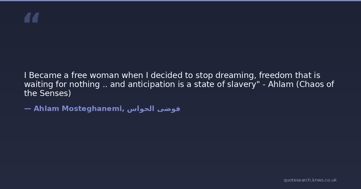I Became a free woman when I decided to stop dreaming, freedom that is waiting for nothing .. and anticipation is a state of slavery" - Ahlam (Chaos of the Senses)