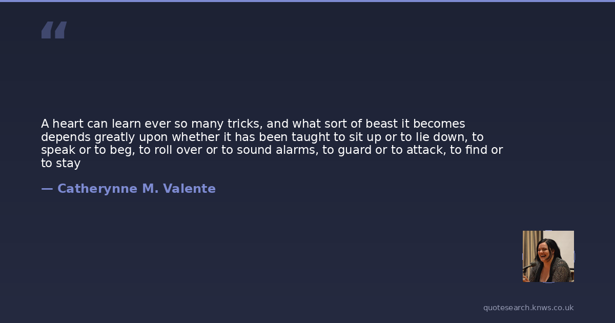 A heart can learn ever so many tricks, and what sort of beast it becomes depends greatly upon whether it has been taught to sit up or to lie down, to speak or to beg, to roll over or to sound alarms, to guard or to attack, to find or to stay
