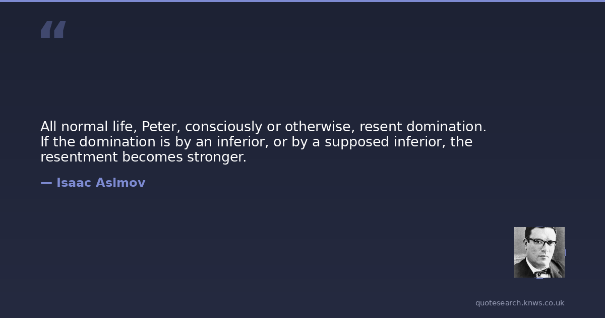 All normal life, Peter, consciously or otherwise, resent domination. If the domination is by an inferior, or by a supposed inferior, the resentment becomes stronger.