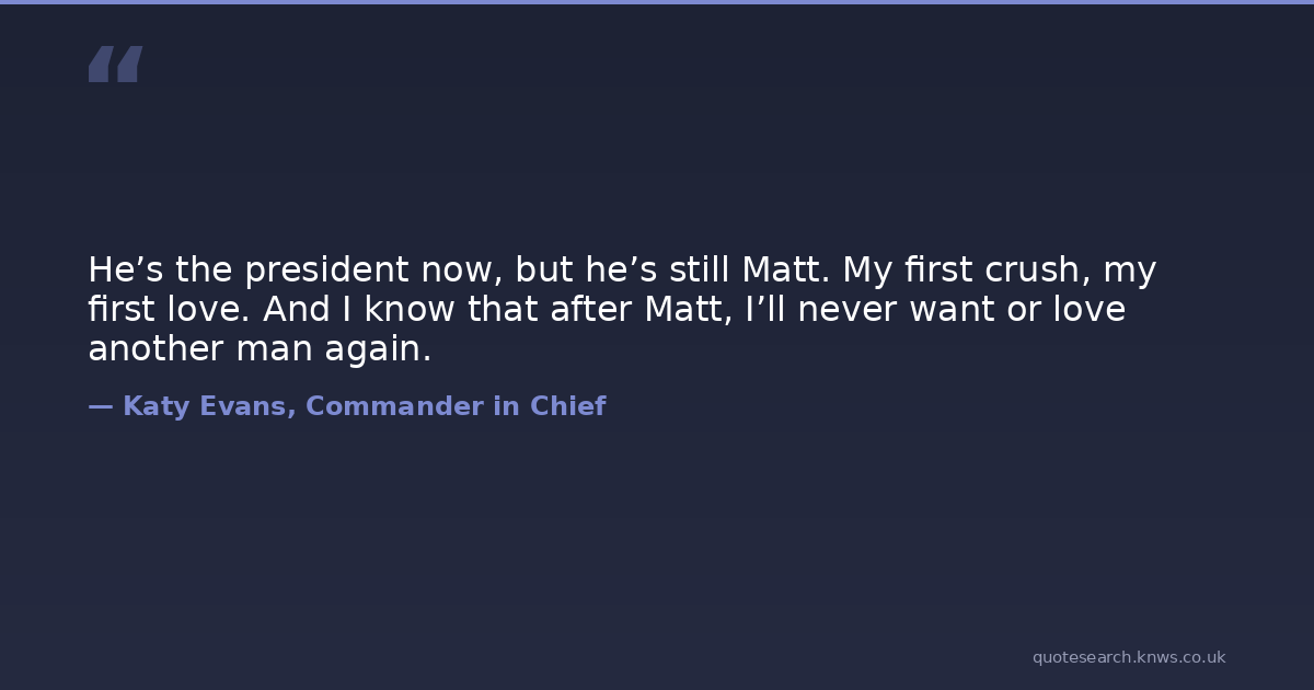 He’s the president now, but he’s still Matt. My first crush, my first love. And I know that after Matt, I’ll never want or love another man again.