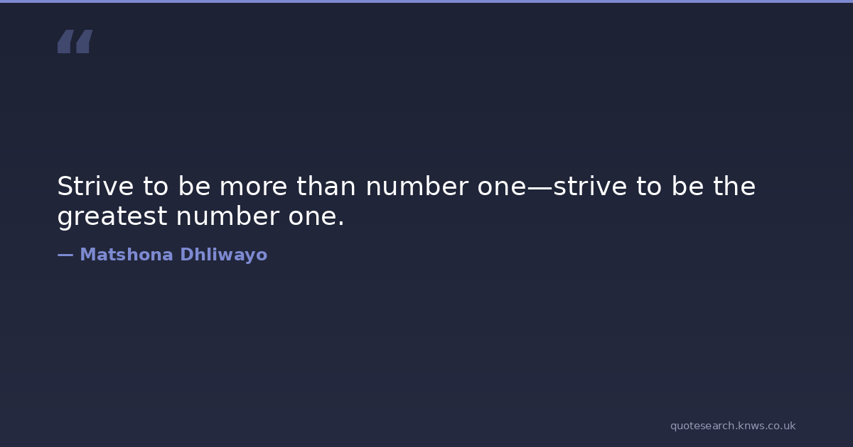 Strive to be more than number one—strive to be the greatest number one. greatness-quotes life-quotes matshona-dhliwayo-quotes motivational-quotations motivational-quotes motivational-quotes-for-women number-one success-quotes Download Image Share on X Share on Facebook Copy Link