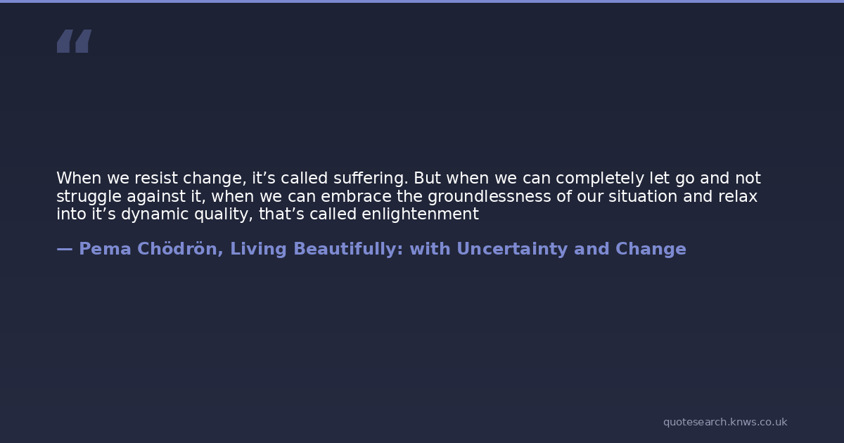When we resist change, it’s called suffering. But when we can completely let go and not struggle against it, when we can embrace the groundlessness of our situation and relax into it’s dynamic quality, that’s called enlightenment