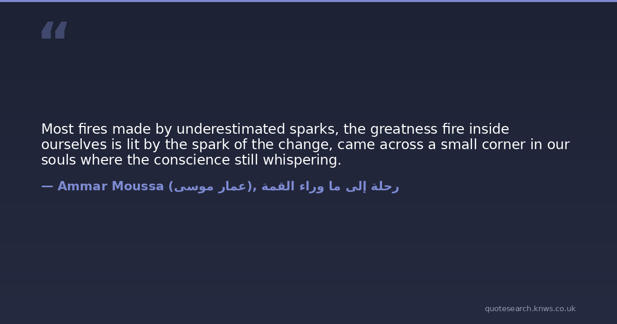 Most fires made by underestimated sparks, the greatness fire inside ourselves is lit by the spark of the change, came across a small corner in our souls where the conscience still whispering.