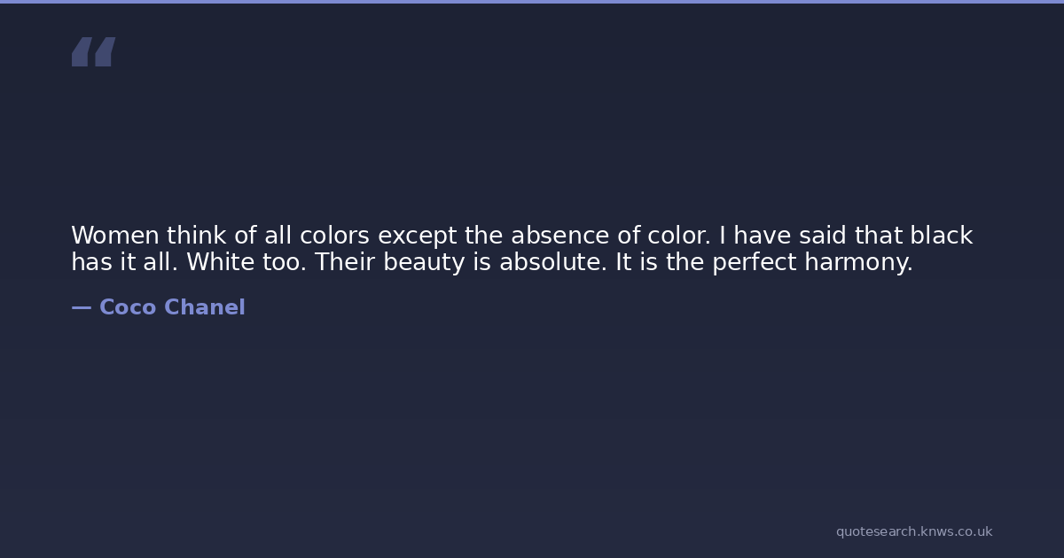 Women think of all colors except the absence of color. I have said that black has it all. White too. Their beauty is absolute. It is the perfect harmony.