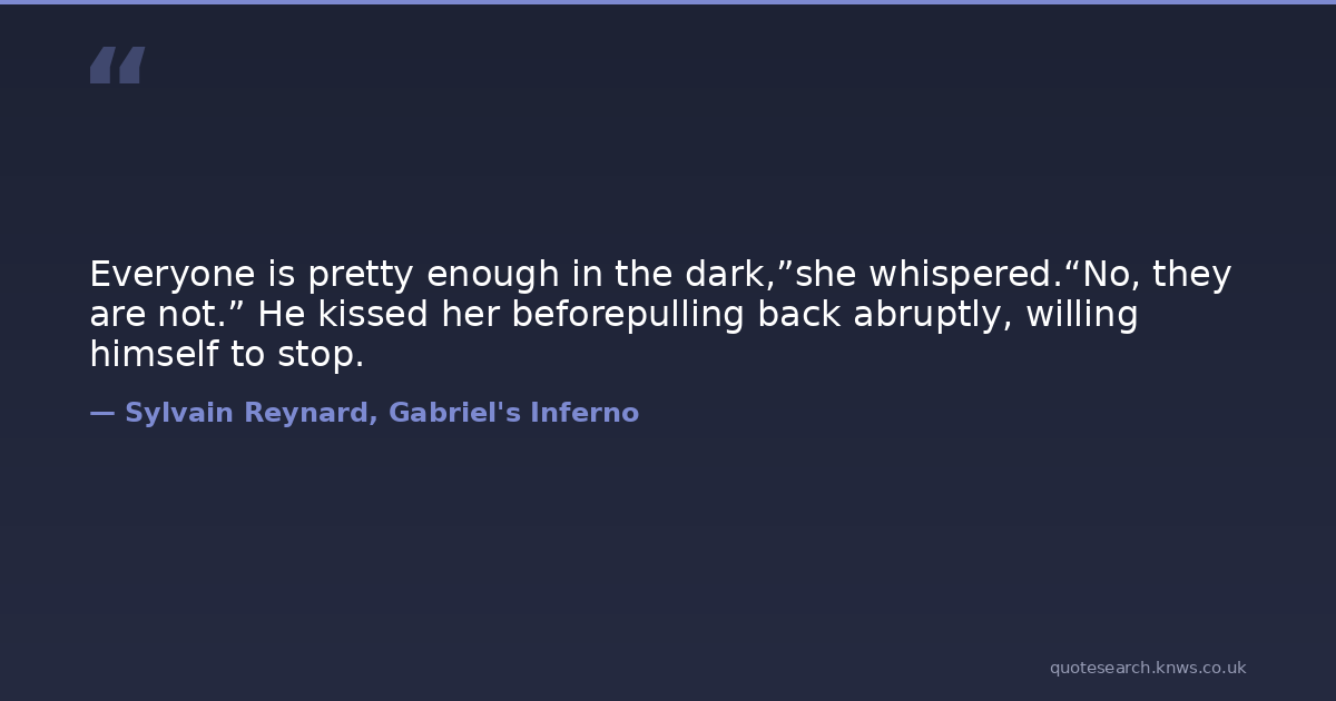 Everyone is pretty enough in the dark,”she whispered.“No, they are not.” He kissed her beforepulling back abruptly, willing himself to stop.
