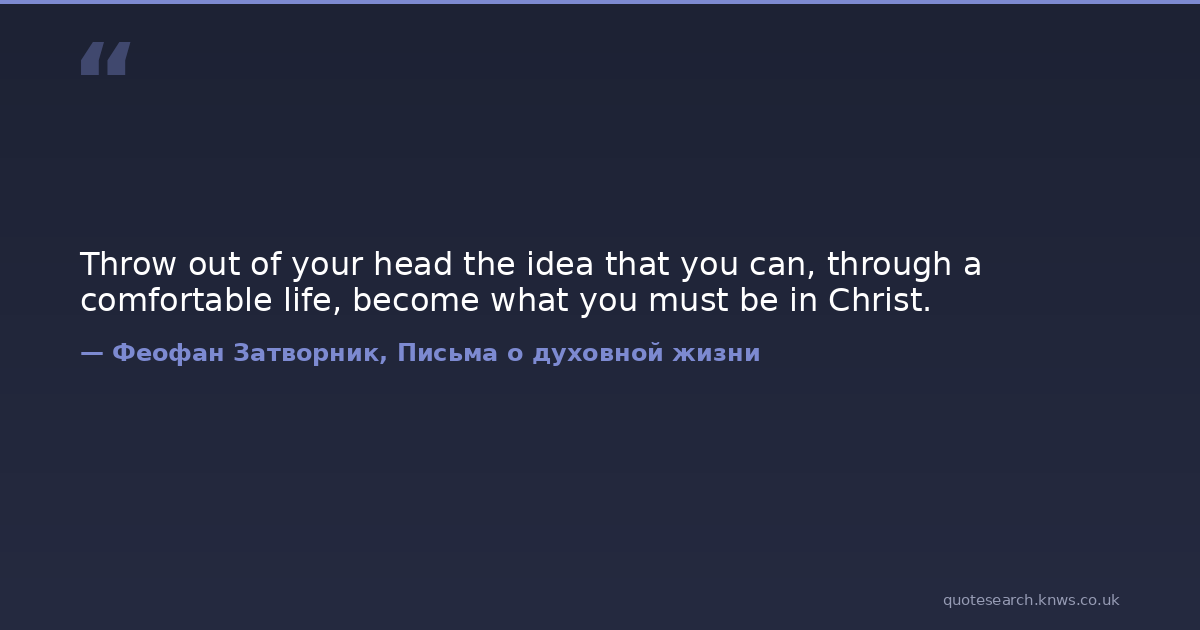 Throw out of your head the idea that you can, through a comfortable life, become what you must be in Christ.