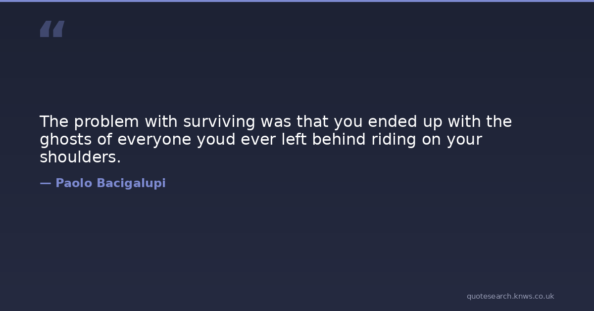 The problem with surviving was that you ended up with the ghosts of everyone youd ever left behind riding on your shoulders.
