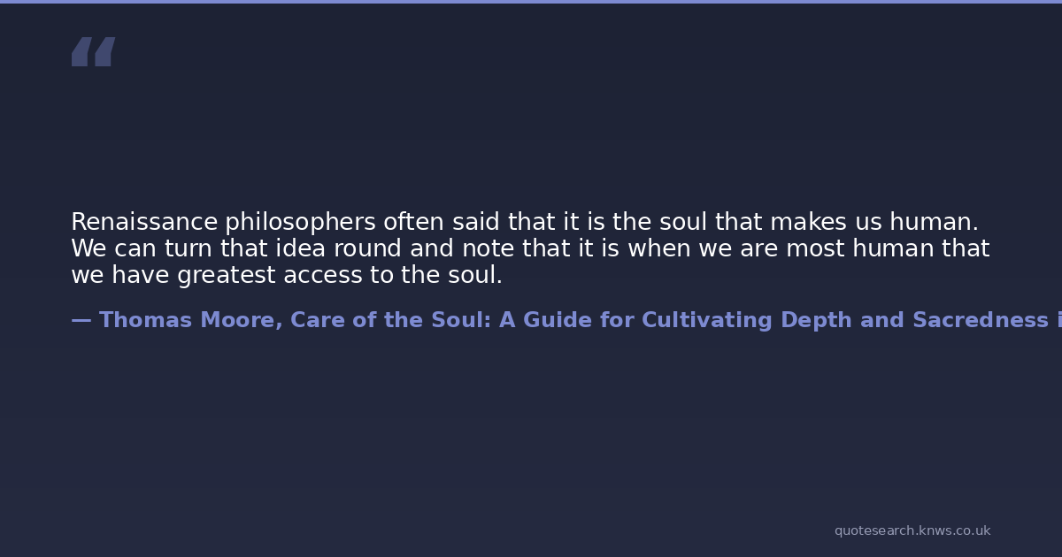 Renaissance philosophers often said that it is the soul that makes us human. We can turn that idea round and note that it is when we are most human that we have greatest access to the soul.