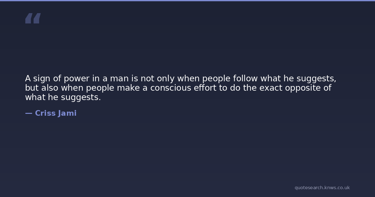 A sign of power in a man is not only when people follow what he suggests, but also when people make a conscious effort to do the exact opposite of what he suggests.