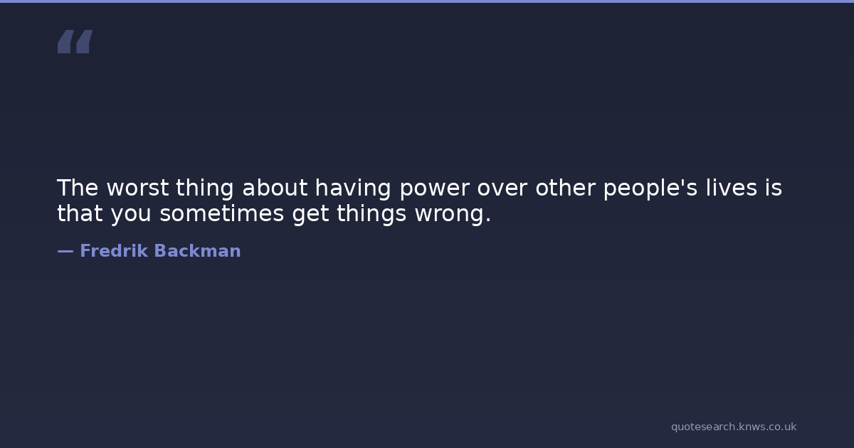 The worst thing about having power over other people's lives is that you sometimes get things wrong.
