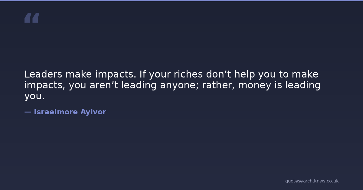 Leaders make impacts. If your riches don’t help you to make impacts, you aren’t leading anyone; rather, money is leading you.