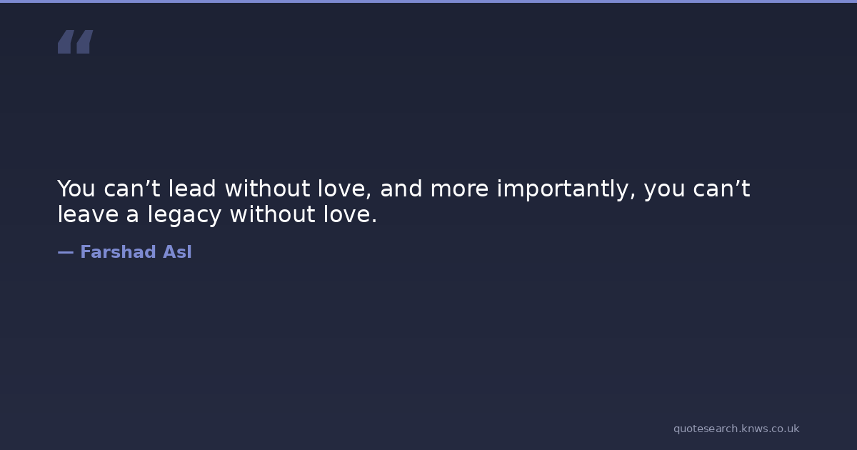 You can’t lead without love, and more importantly, you can’t leave a legacy without love.