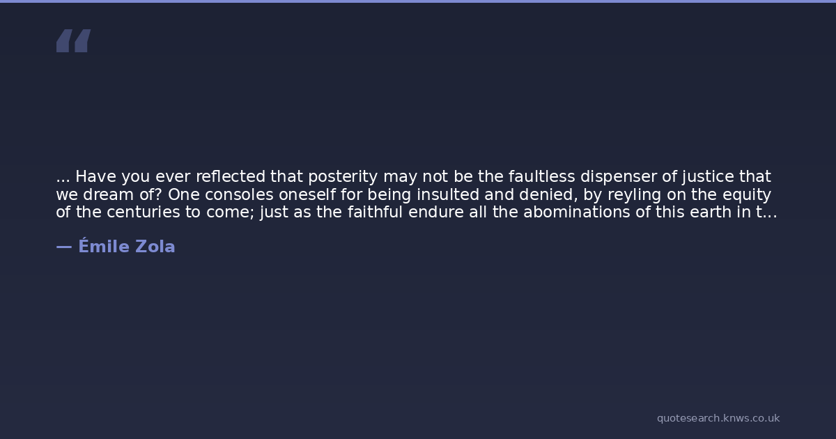 ... Have you ever reflected that posterity may not be the faultless dispenser of justice that we dream of? One consoles oneself for being insulted and denied, by reyling on the equity of the centuries to come; just as the faithful endure all the abominations of this earth in the firm belief of another life, in which each will be rewarded according to his deserts. But suppose Paradise exists no more for the artist than it does for the Catholic, suppose that future generations prolong the misunderstanding and prefer amiable little trifles to vigorous works! Ah! What a sell it would be, eh? To have led a convict's life - to have screwed oneself down to one's work - all for a mere delusion!..."Bah! What does it matter? Well, there's nothing hereafter. We are even madder than the fools who kill themselves for a woman. When the earth splits to pieces in space like a dry walnut, our works won't add one atom to its dust.