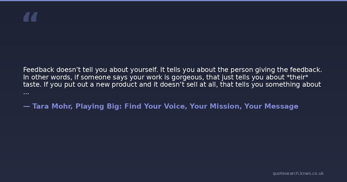 Feedback doesn’t tell you about yourself. It tells you about the person giving the feedback. In other words, if someone says your work is gorgeous, that just tells you about *their* taste. If you put out a new product and it doesn’t sell at all, that tells you something about what your audience does and doesn’t want. When we look at praise and criticism as information about the people giving it, we tend to get really curious about the feedback, rather than dejected or defensive.