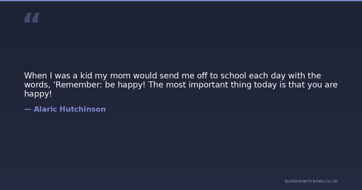 When I was a kid my mom would send me off to school each day with the words, ‘Remember: be happy! The most important thing today is that you are happy!