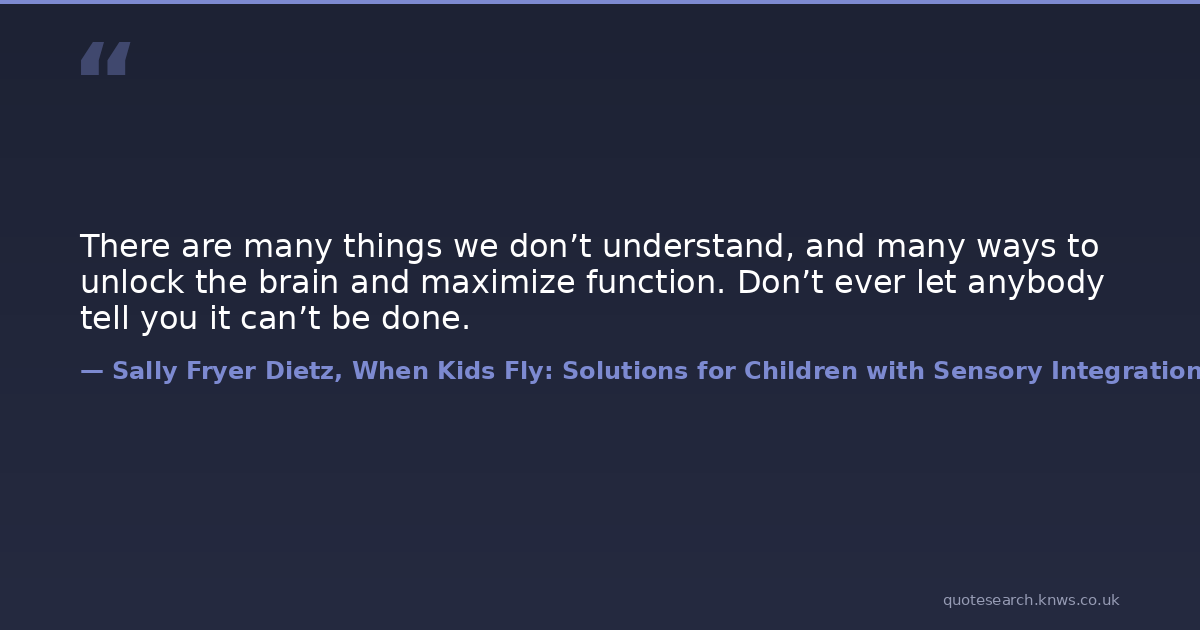 There are many things we don’t understand, and many ways to unlock the brain and maximize function. Don’t ever let anybody tell you it can’t be done.