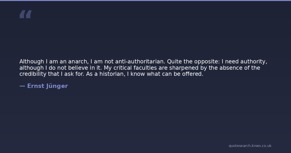 Although I am an anarch, I am not anti-authoritarian. Quite the opposite: I need authority, although I do not believe in it. My critical faculties are sharpened by the absence of the credibility that I ask for. As a historian, I know what can be offered.