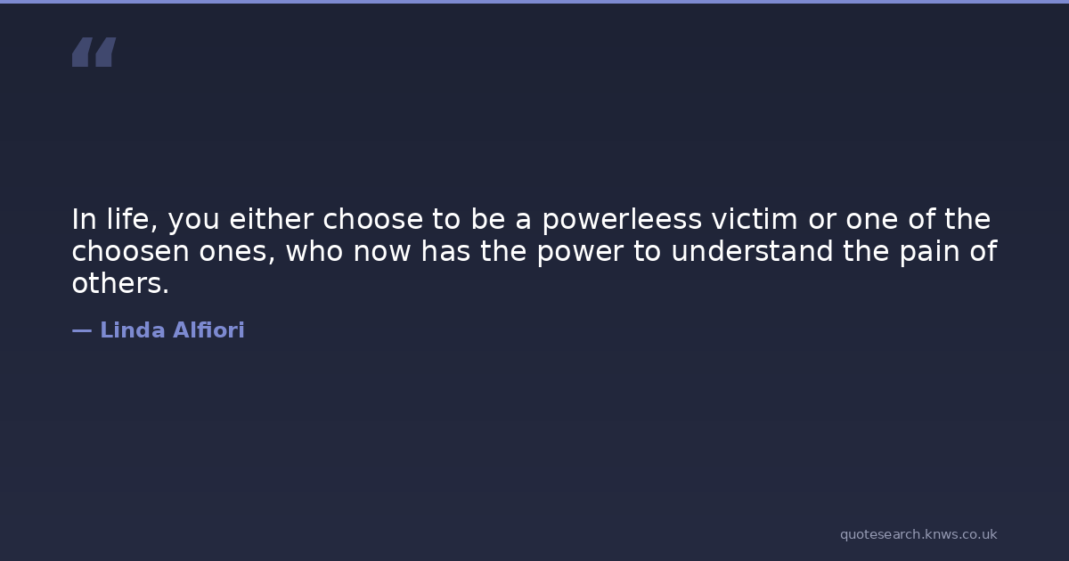 In life, you either choose to be a powerleess victim or one of the choosen ones, who now has the power to understand the pain of others.