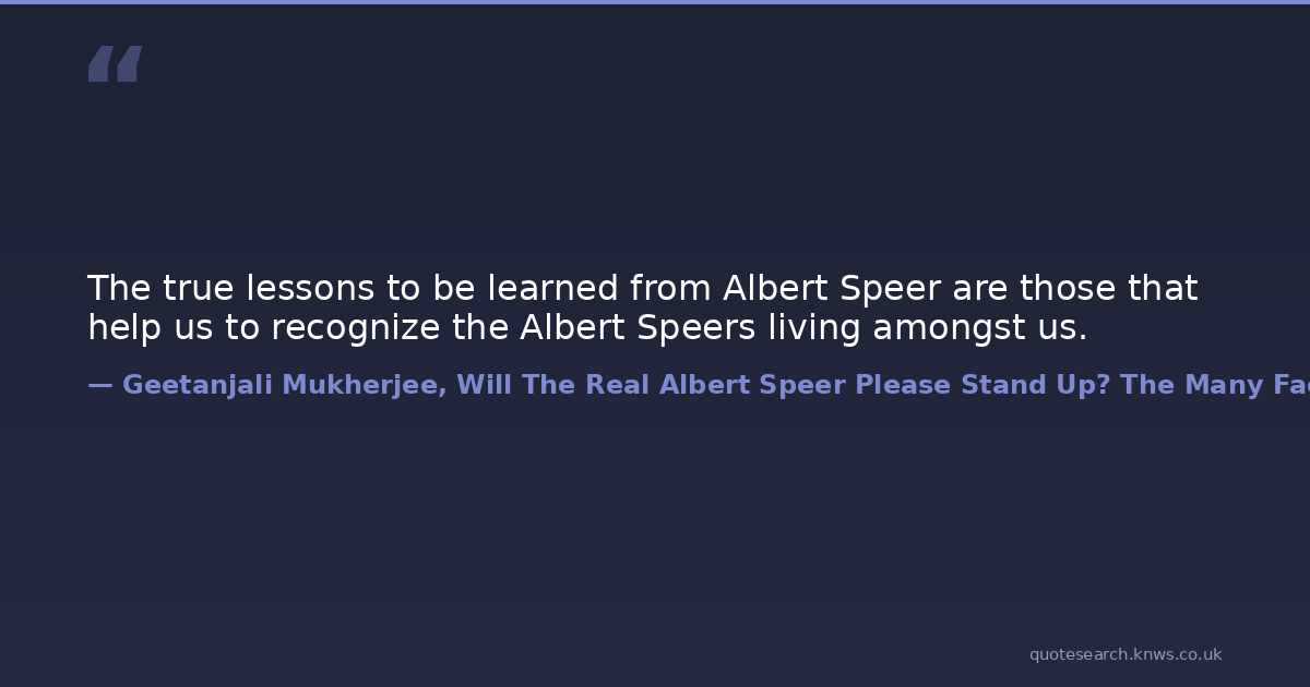 The true lessons to be learned from Albert Speer are those that help us to recognize the Albert Speers living amongst us.