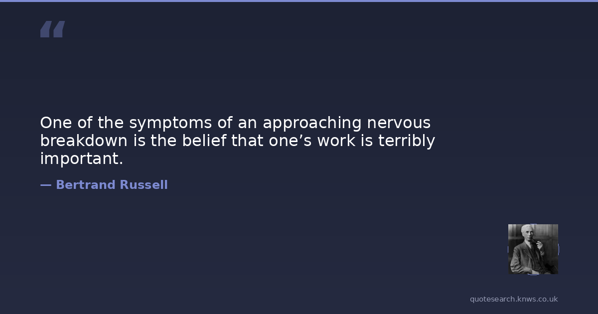 One of the symptoms of an approaching nervous breakdown is the belief that one’s work is terribly important.
