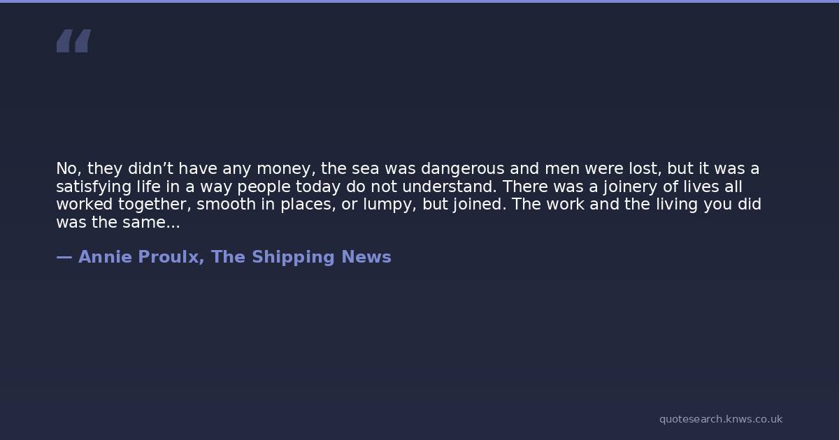 No, they didn’t have any money, the sea was dangerous and men were lost, but it was a satisfying life in a way people today do not understand. There was a joinery of lives all worked together, smooth in places, or lumpy, but joined. The work and the living you did was the same things, not separated out like today.