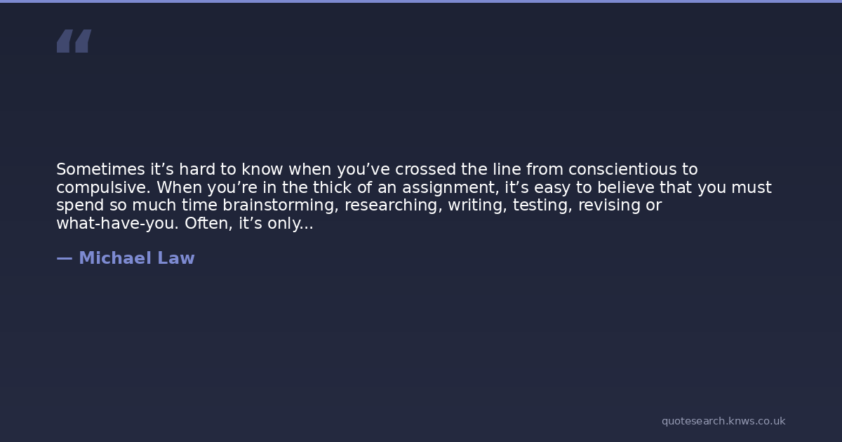Sometimes it’s hard to know when you’ve crossed the line from conscientious to compulsive. When you’re in the thick of an assignment, it’s easy to believe that you must spend so much time brainstorming, researching, writing, testing, revising or what-have-you. Often, it’s only after you’ve been working for hours on end that you realize that half the work you’ve been doing wasn’t actually necessary and that you’ve just wasted a lot of time.