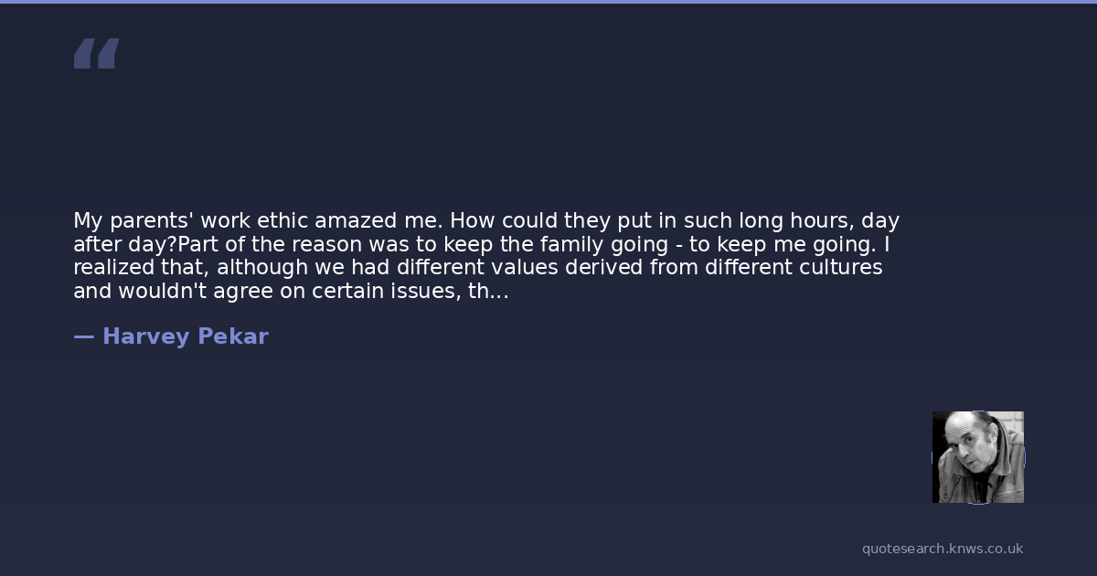 My parents' work ethic amazed me. How could they put in such long hours, day after day?Part of the reason was to keep the family going - to keep me going. I realized that, although we had different values derived from different cultures and wouldn't agree on certain issues, they were good people, incredible people, and I loved and respected them.