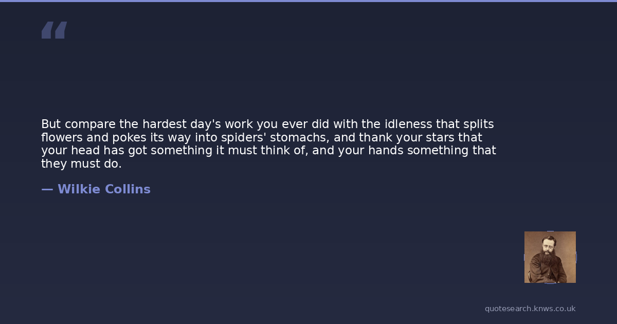 But compare the hardest day's work you ever did with the idleness that splits flowers and pokes its way into spiders' stomachs, and thank your stars that your head has got something it must think of, and your hands something that they must do.