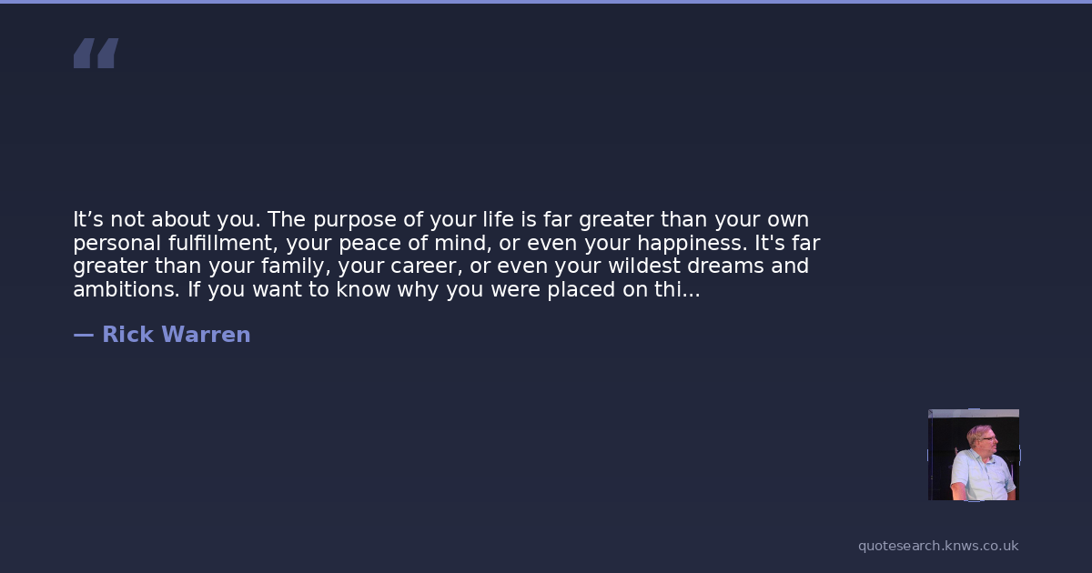 It’s not about you. The purpose of your life is far greater than your own personal fulfillment, your peace of mind, or even your happiness. It's far greater than your family, your career, or even your wildest dreams and ambitions. If you want to know why you were placed on this planet, you must begin with God. You were born by his purpose and for his purpose.