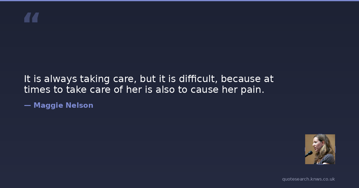 Maggie Nelson was American writer. Maggie Nelson is an American writer. She has been described as a genre-busting writer defying classification, working in autobiography, art criticism, theory, feminism, queerness, sexual violence, the history of the avant-garde, aesthetic theory, philosophy, scholarship, and poetry. Read more on Wikipedia →