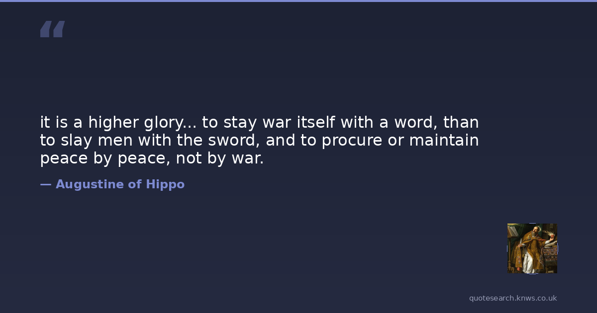 it is a higher glory... to stay war itself with a word, than to slay men with the sword, and to procure or maintain peace by peace, not by war.