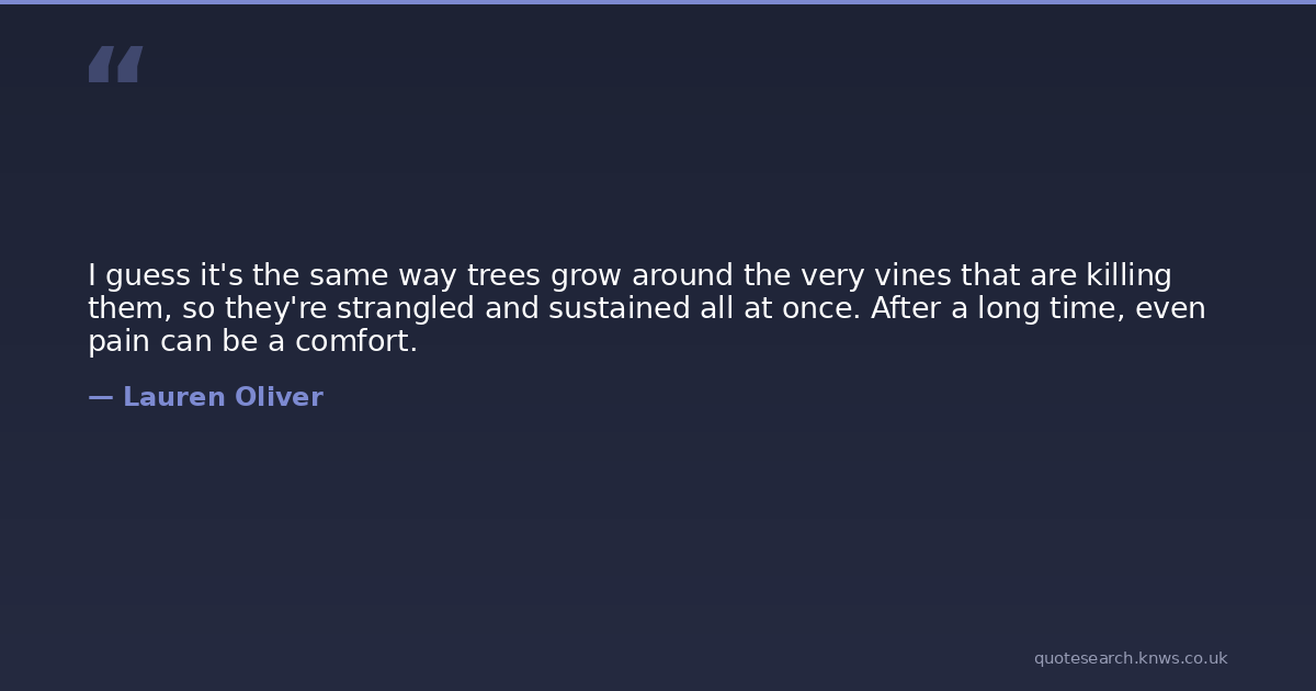 I guess it's the same way trees grow around the very vines that are killing them, so they're strangled and sustained all at once. After a long time, even pain can be a comfort.