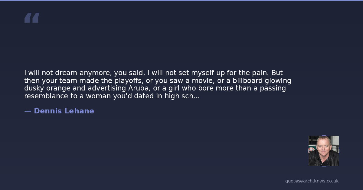 Dennis Lehane was a contemporary American novelist. Dennis Lehane is an American author and screenwriter. He has published more than a dozen novels; the first several were a series of mysteries featuring recurring characters, including A Drink Before the War. Read more on Wikipedia →