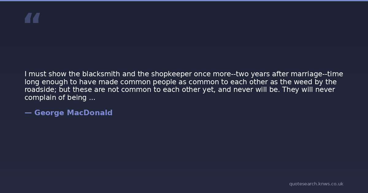 I must show the blacksmith and the shopkeeper once more--two years after marriage--time long enough to have made common people as common to each other as the weed by the roadside; but these are not common to each other yet, and never will be. They will never complain of being _desillusionnes_, for they have never been illuded. They look up each to the other still, because they were right in looking up each to the other from the first. Each was, and therefore each is and will be, real.