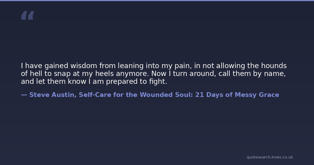 I have gained wisdom from leaning into my pain, in not allowing the hounds of hell to snap at my heels anymore. Now I turn around, call them by name, and let them know I am prepared to fight.