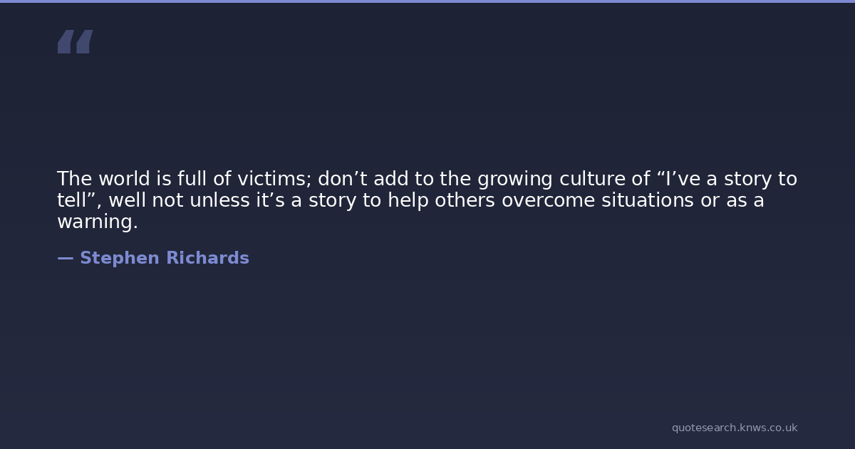 The world is full of victims; don’t add to the growing culture of “I’ve a story to tell”, well not unless it’s a story to help others overcome situations or as a warning.