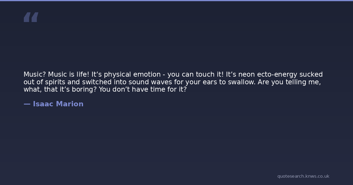 Music? Music is life! It’s physical emotion - you can touch it! It’s neon ecto-energy sucked out of spirits and switched into sound waves for your ears to swallow. Are you telling me, what, that it’s boring? You don’t have time for it?