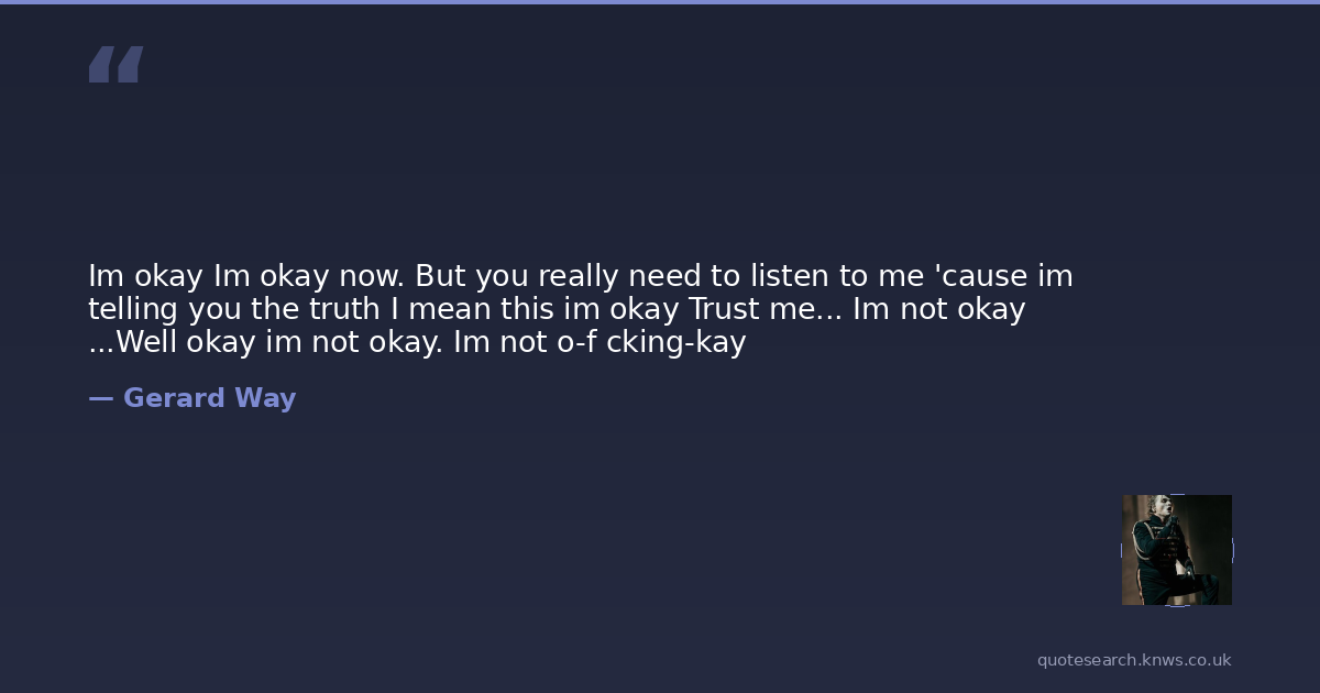 Im okay Im okay now. But you really need to listen to me 'cause im telling you the truth I mean this im okay Trust me... Im not okay ...Well okay im not okay. Im not o-f cking-kay
