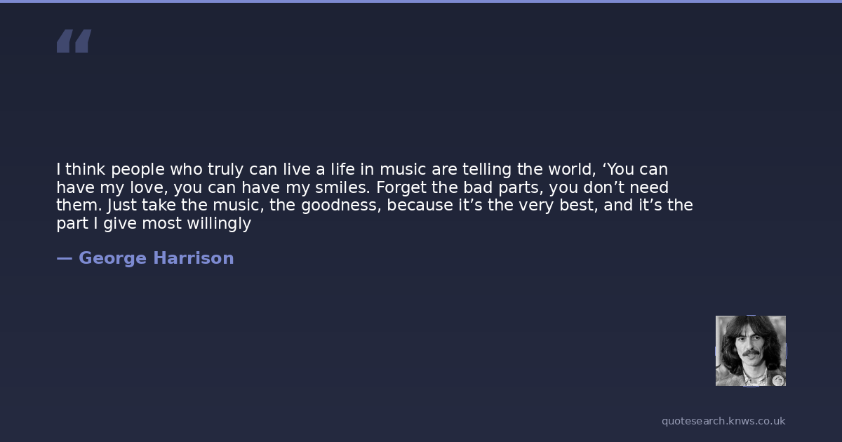 I think people who truly can live a life in music are telling the world, ‘You can have my love, you can have my smiles. Forget the bad parts, you don’t need them. Just take the music, the goodness, because it’s the very best, and it’s the part I give most willingly