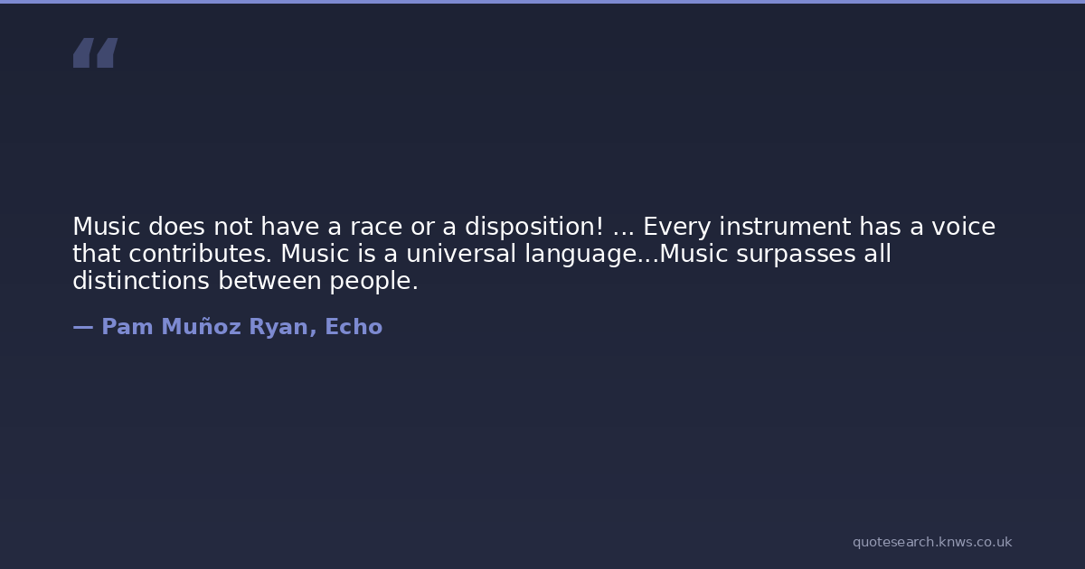 Music does not have a race or a disposition! ... Every instrument has a voice that contributes. Music is a universal language...Music surpasses all distinctions between people.