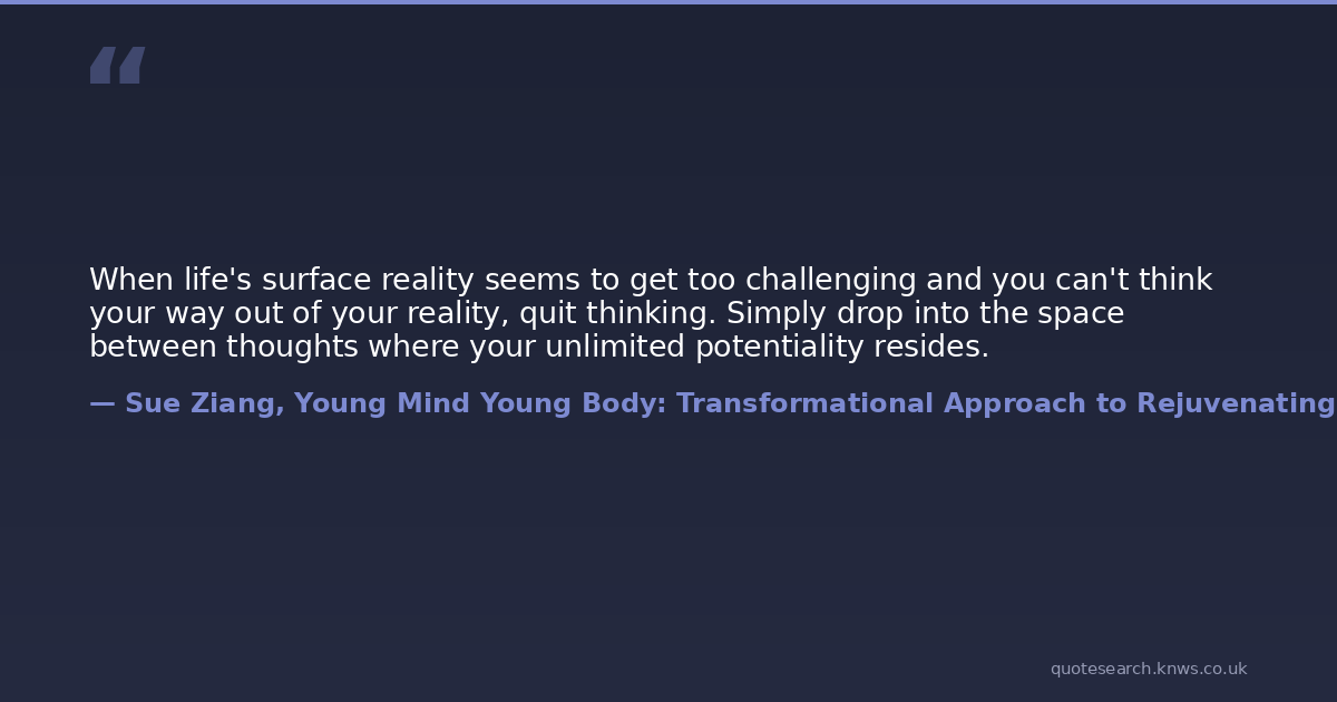 When life's surface reality seems to get too challenging and you can't think your way out of your reality, quit thinking. Simply drop into the space between thoughts where your unlimited potentiality resides.