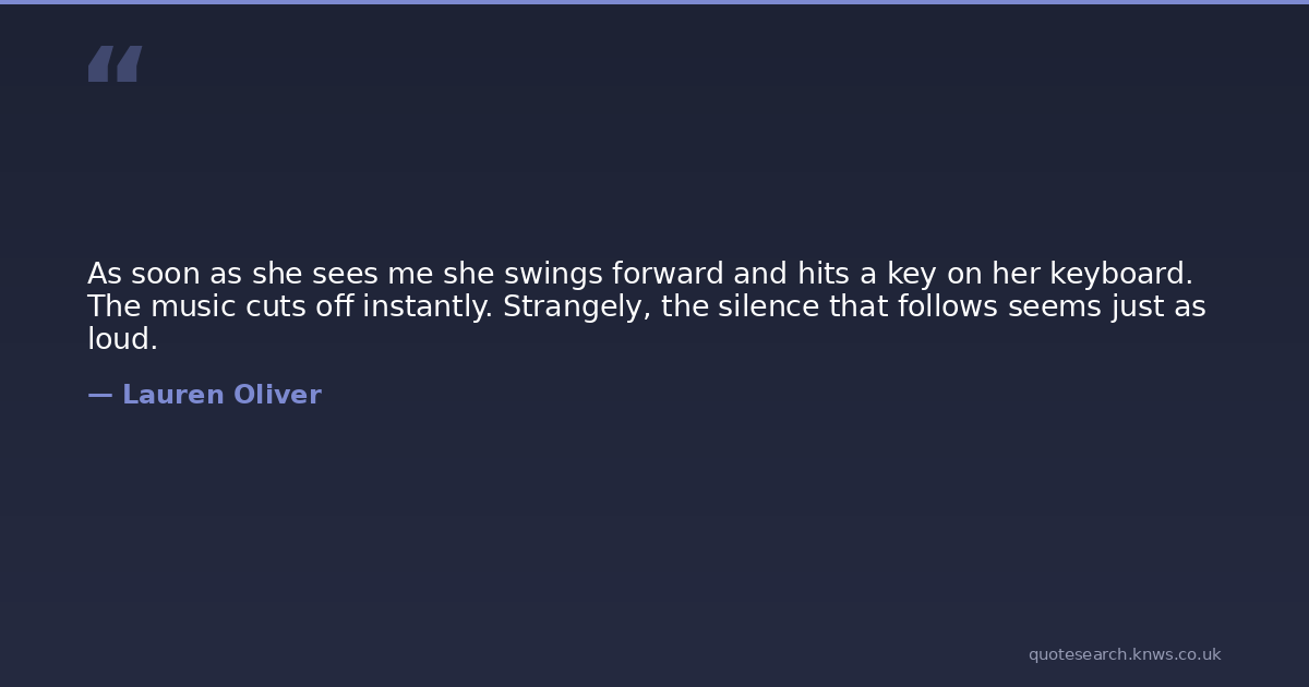 As soon as she sees me she swings forward and hits a key on her keyboard. The music cuts off instantly. Strangely, the silence that follows seems just as loud.