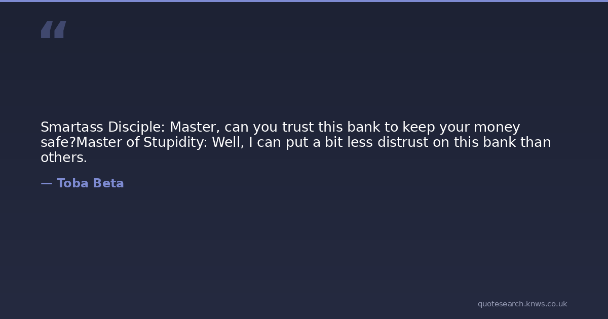 Smartass Disciple: Master, can you trust this bank to keep your money safe?Master of Stupidity: Well, I can put a bit less distrust on this bank than others.