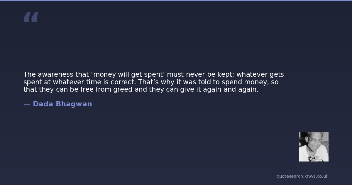 The awareness that ‘money will get spent’ must never be kept; whatever gets spent at whatever time is correct. That’s why it was told to spend money, so that they can be free from greed and they can give it again and again.