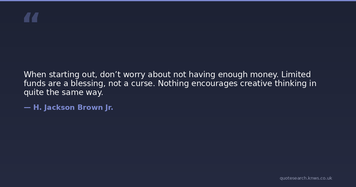 When starting out, don’t worry about not having enough money. Limited funds are a blessing, not a curse. Nothing encourages creative thinking in quite the same way.