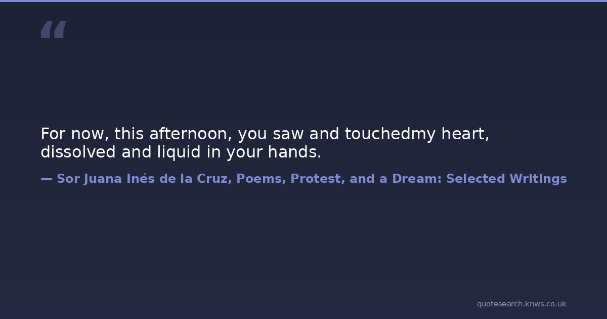 For now, this afternoon, you saw and touchedmy heart, dissolved and liquid in your hands.